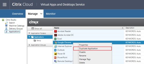 Tip – Typically, published browsers are setup before anything that’s custom so you can choose to duplicate the application in Studio > Applications to save a little time on the setup, just be sure to rename, group and deliver as required: