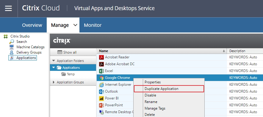 I recently helped a customer get going with Citrix Cloud (Virtual Apps and Desktops sevice) and whilst in the process of configuring their published apps they asked for a handful of custom icons. A number of their webapps run using Chrome but they wanted to have a custom icon for the application that was more relevant, opposed to the standard Chrome icon, this makes for a better look and feel and improved user experience. With Citix Cloud, you only get to choose from the Citrix default icons with no option to upload your own: